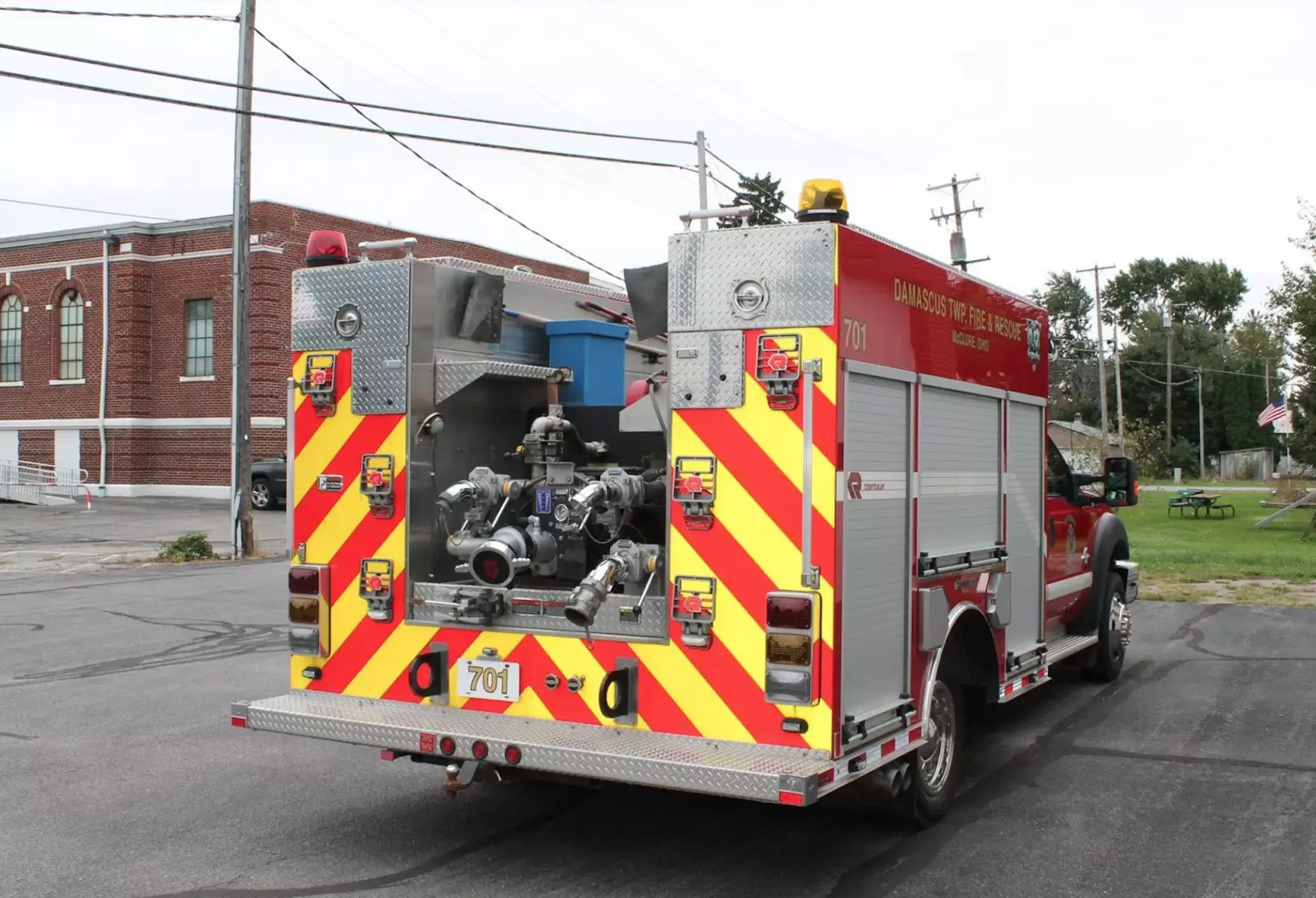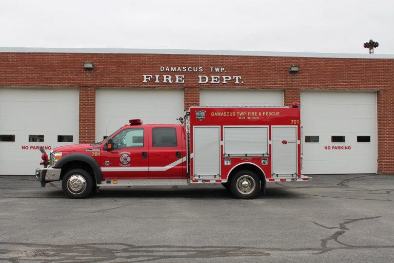 Brush 701 is built by Rosenbauer and sits on a Ford F-550 4×4 chassis. It is fitted with a 500 GPM pump and carries 300 gallons of water. 701 is a multi-purpose truck as it responds to almost every type of call. It carries a variety of technical rescue equipment including a second set of extrication equipment. It also responds as a “chase” vehicle on EMS calls to carry extra personnel and equipment. Brush fires can be extinguished without leaving the cab of the truck due to the remote control monitor located on the front bumper. This is a much safer option for our firefighters while on these types of fires. Another unique capability of Brush 701 is it is able to relay water from water sources well off the roadway to other engines and tankers during larger fires.