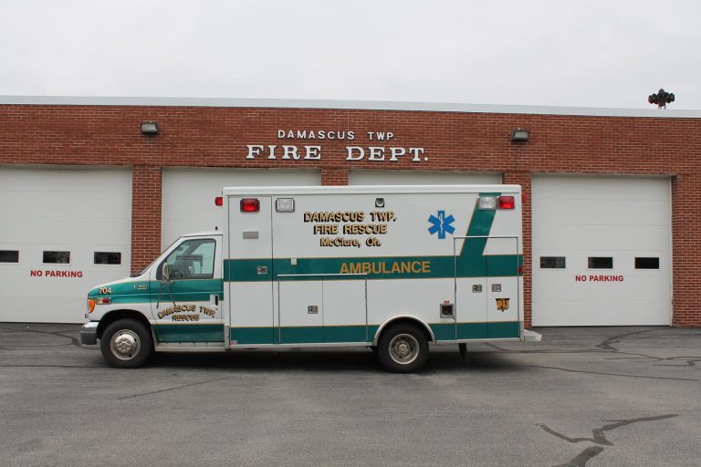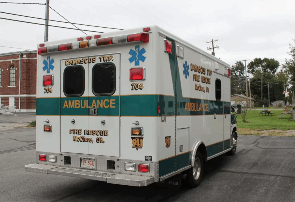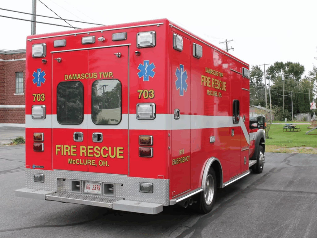 Rescue 704 is built by McCoy Miller and sits on a Ford E350 chassis. This rescue is our second due unit for EMS calls and accidents. If enough staffing is available, 704 responds as the primary rehab unit for firefighters on fire scenes.