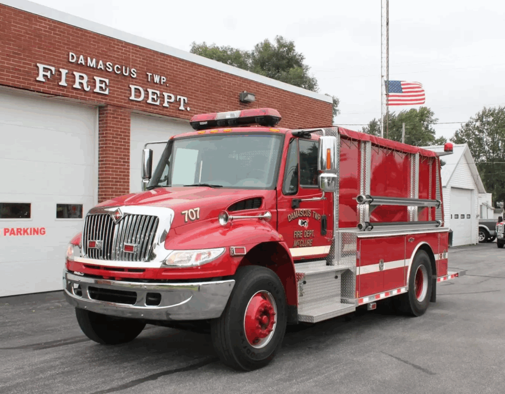 Tanker 707 is built by Rosenbauer and sits on an International 4400 chassis. It carries 2000 gallons of water which can be dumped on both sides and the rear. 707 carries a portable water tank which can be deployed during water shuttles. Tanker 707 also carries a 500 GPM portable pump which can be used to relay water from sources off the roadway.