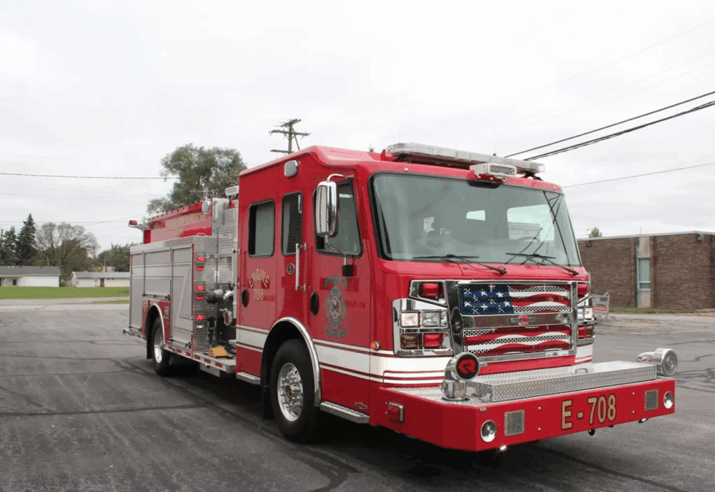 Engine 708 is built by Rosenbauer and sits on a custom built 6 man Rosenbauer Commander chassis. 708 is fitted with a 1500 GPM pump and carries 1000 gallons of water and 60 gallons of firefighting foam. This engine is our first due for structure and vehicle fires and also the first out engine on accidents. 708 is also used for brush and field fires to refill Brush 701 and Engine Tanker 705. This engine also carries a full array of extrication and stabilization equipment.