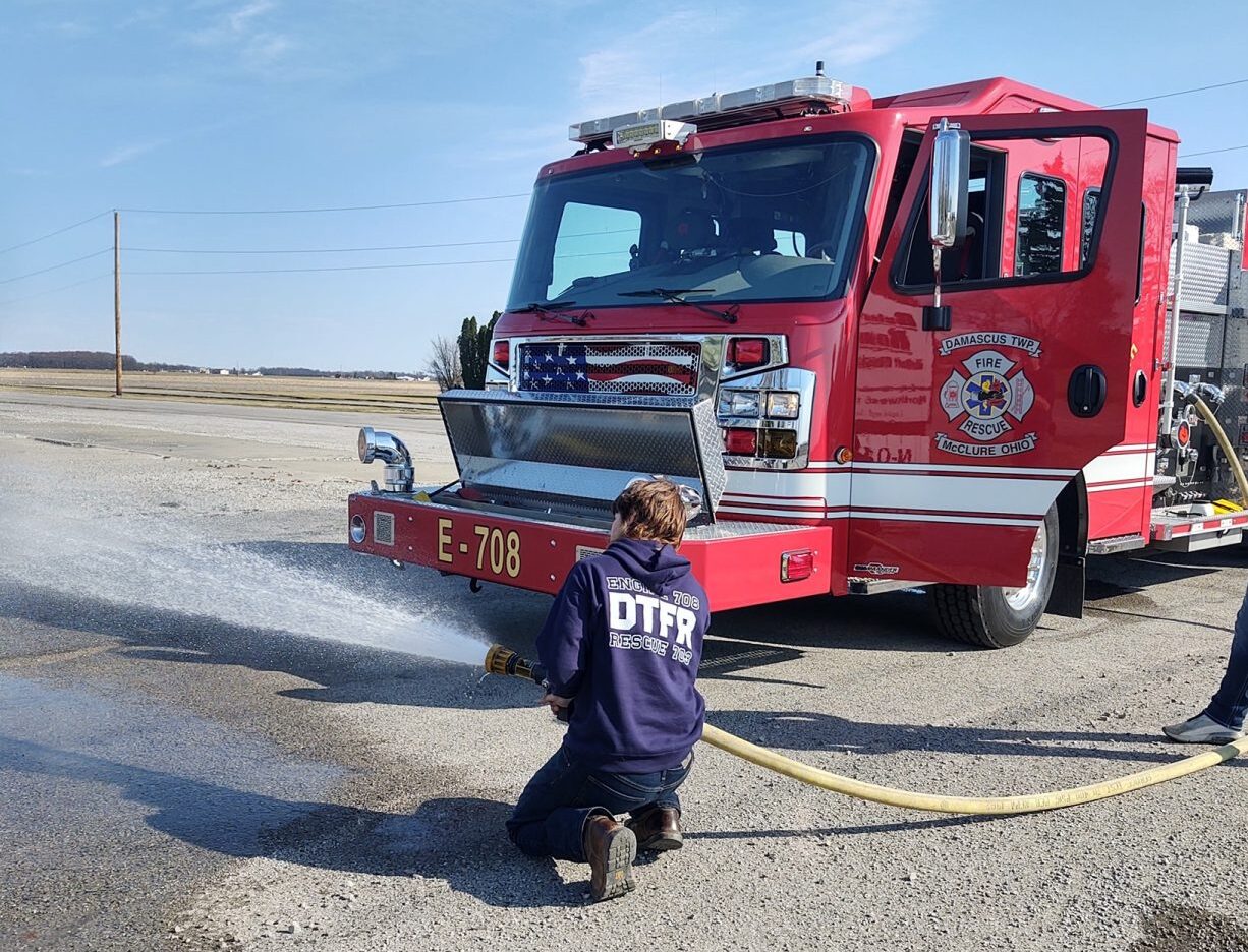 Engine Tanker 705 is built by Pierce and sits on a Ford L8000 Chassis. It is fitted with a 1500 GPM front mount pump and carries 1500 gallons of water. 705 is our second due engine for fires. It can be used as an engine to pump water or as a tanker. A unique feature of 705 is it’s front mount pump. It allows the truck to “pump and roll” meaning it can be driven while the pump is engaged. This is an advantage on brush or field fire.